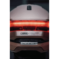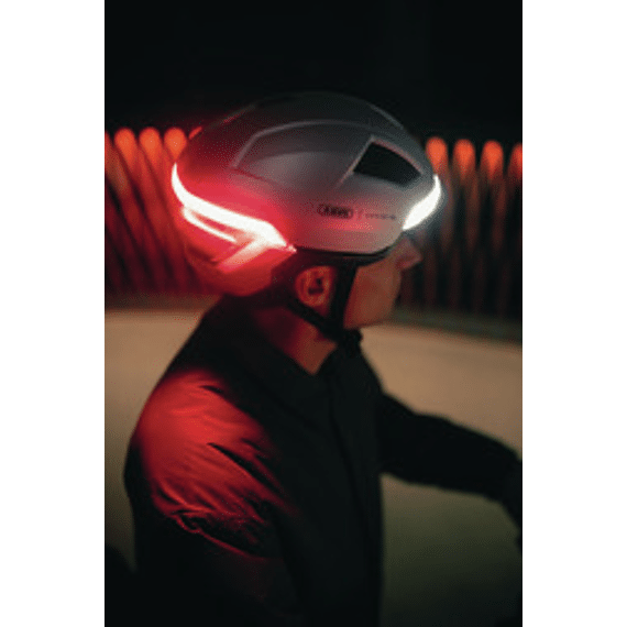 De ABUS HYP-E gebruikt geavanceerde LED-technologie die perfect geïntegreerd is in het helmontwerp. Via de meegeleverde draadloze afstandsbediening activeer je eenvoudig de richtingaanwijzers, remlichten en standaardverlichting. Het systeem werkt intuïtief: één druk op de knop en andere weggebruikers weten precies welke kant je opgaat. De helm laadt op via USB en biedt urenlange gebruiksduur per laadbeurt.