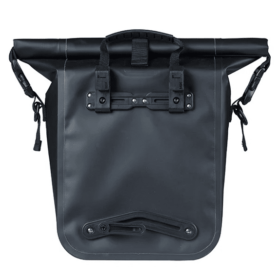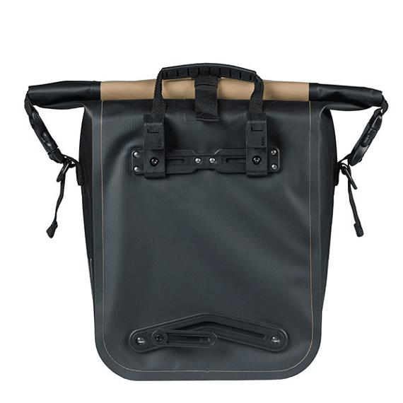 De Basil Rivo is uitgerust met het innovatieve MIK Hooks-bevestigingssysteem dat je in één vloeiende beweging op je bagagedrager klikt. De roltopsluiting zorgt ervoor dat je de tas eenvoudig kunt afsluiten en aanpassen aan de hoeveelheid spullen die je meeneemt. Binnenin vind je twee handige mesh opbergvakken voor kleine items zoals sleutels en portemonnee, terwijl het buitenritsvak snel toegankelijk is voor spullen die je onderweg nodig hebt. Wil je de fietstas meenemen na aankomst? Klik hem los en gebruik de comfortabele schouderband.