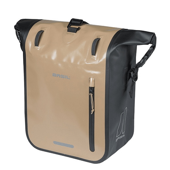De Basil Rivo heeft een IPX3-waterdichtheidsrating, wat betekent dat de tas beschermt tegen regen uit elke hoek. Het tarpaulin materiaal en de roltopsluiting zorgen ervoor dat je spullen droog blijven, zelfs tijdens flinke regenbuien. Voor optimale bescherming raden we aan de roltop goed af te sluiten.
