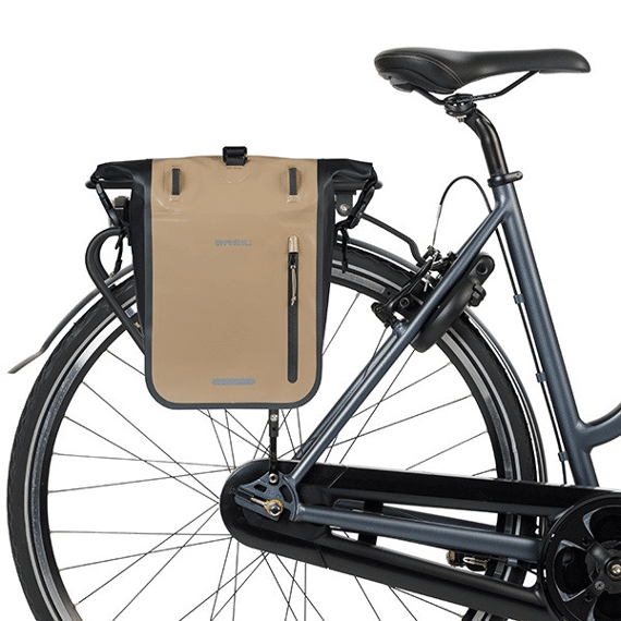 De Basil Rivo enkele fietstas combineert sportief design met waterdichte bescherming en is verkrijgbaar in twee praktische formaten: de M-versie met 12-15 liter en de L-versie met 16-18 liter opbergruimte. Dankzij het slimme MIK Hooks-systeem klik je deze tas met één handbeweging vast op je bagagedrager, terwijl het duurzame tarpaulin materiaal je spullen droog houdt in alle weersomstandigheden. Perfect voor de moderne fietser die functionaliteit en stijl weet te waarderen.
