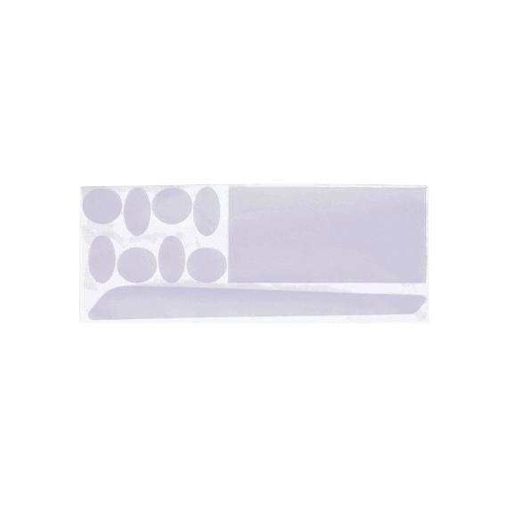 - Complete beschermset met liggende achterbrugbeschermer, 4x30mm pads, 4x20x40mm pads en een 80x152mm rechthoekige pad voor maatwerk
