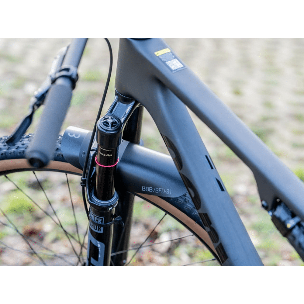 - Extra dekking voor voorvorkpoten zorgt ervoor dat modder en water geen kans krijgen om je fietsonderdelen te vervuilen