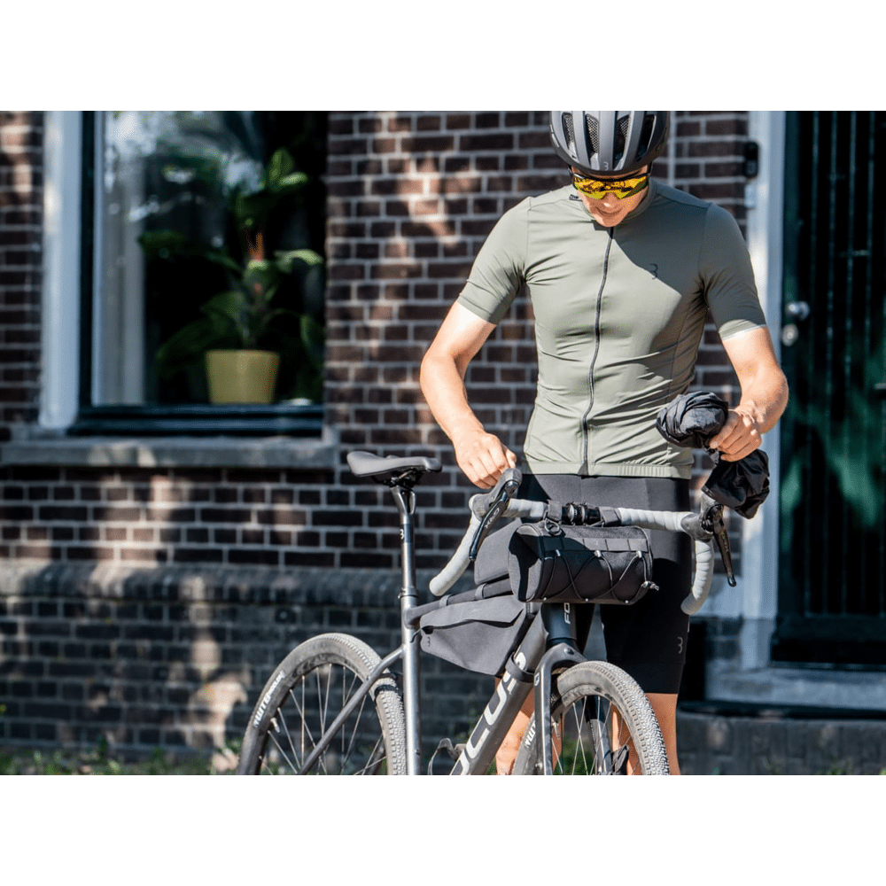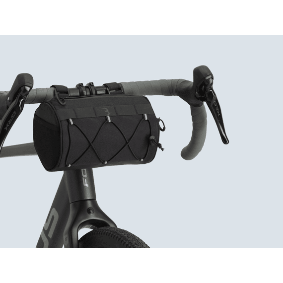- Universele bevestiging: de stijve polyester straps passen moeiteloos op kleine ronde sturen én brede aerobars, zodat je de tas op elke fiets kunt gebruiken