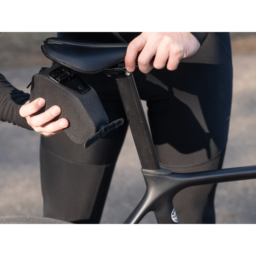 - Gebogen vormgeving: Het speciale gebogen design zorgt voor een natuurlijke, aerodynamische positie onder je zadel zonder dat de tas in de weg zit tijdens het fietsen
