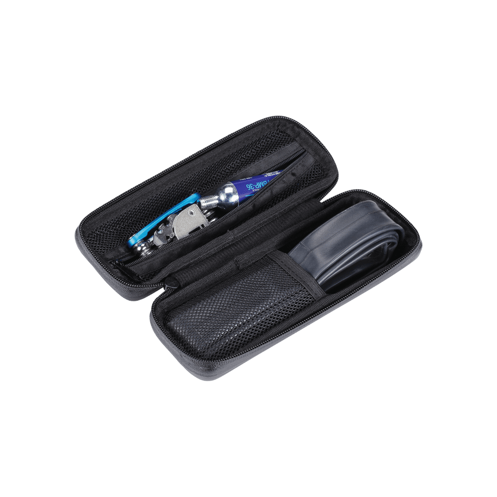 De BBB Cycling SoftCase schuif je eenvoudig in je bestaande bidonhouder, precies zoals een gewone bidon. De zachte buitenkant beschermt zowel je frame als de inhoud, terwijl de waterdichte ritsen ervoor zorgen dat alles droog blijft. Dankzij de slimme indeling met meerdere compartimenten kun je je gereedschap logisch organiseren: je binnenband in het grote vak, je multitool en CO2-cartridges in de kleinere vakjes. Zo vind je tijdens een pechonderbreking direct wat je nodig hebt, zonder te hoeven zoeken.