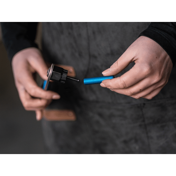 De BBB Cycling GuidePin wordt eenvoudig over de standaard 9mm guide pin van je lockring sleutel geschoven en fungeert als adapter voor je 12mm thru as. De geïntegreerde magneet zorgt ervoor dat de adapter stevig op zijn plaats blijft zitten tijdens het werk. Plaats je lockring sleutel met de GuidePin door de thru as van je achterwiel, en je gereedschap blijft perfect uitgelijnd met de cassette lockring. Dit voorkomt afglijden en beschadiging, en maakt het verwijderen of aanbrengen van je cassette een fluitje van een cent.