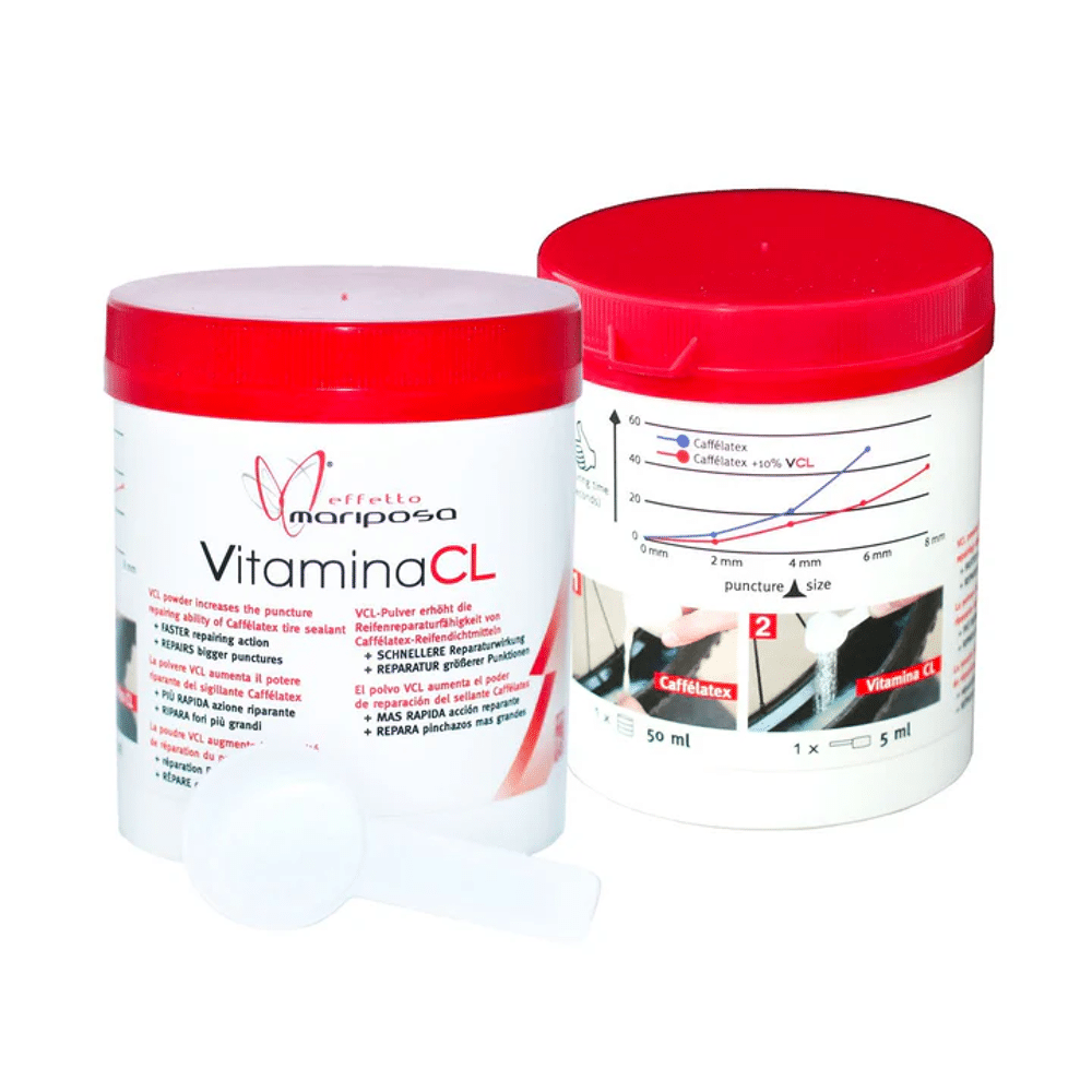 Wil je grotere lekken sneller repareren met minder drukverlies? Vitamina CL van Effetto Mariposa is het ultieme additief dat je Caffélatex sealant naar een hoger niveau tilt. Perfect voor race-dagen wanneer elke seconde telt en je geen tijd hebt voor bandenpech.