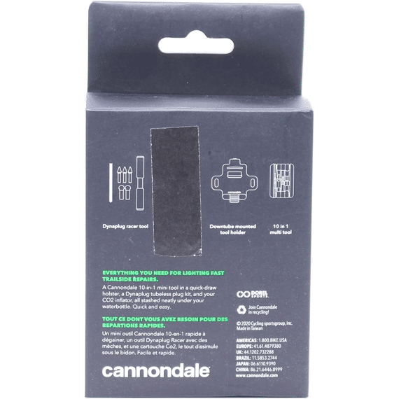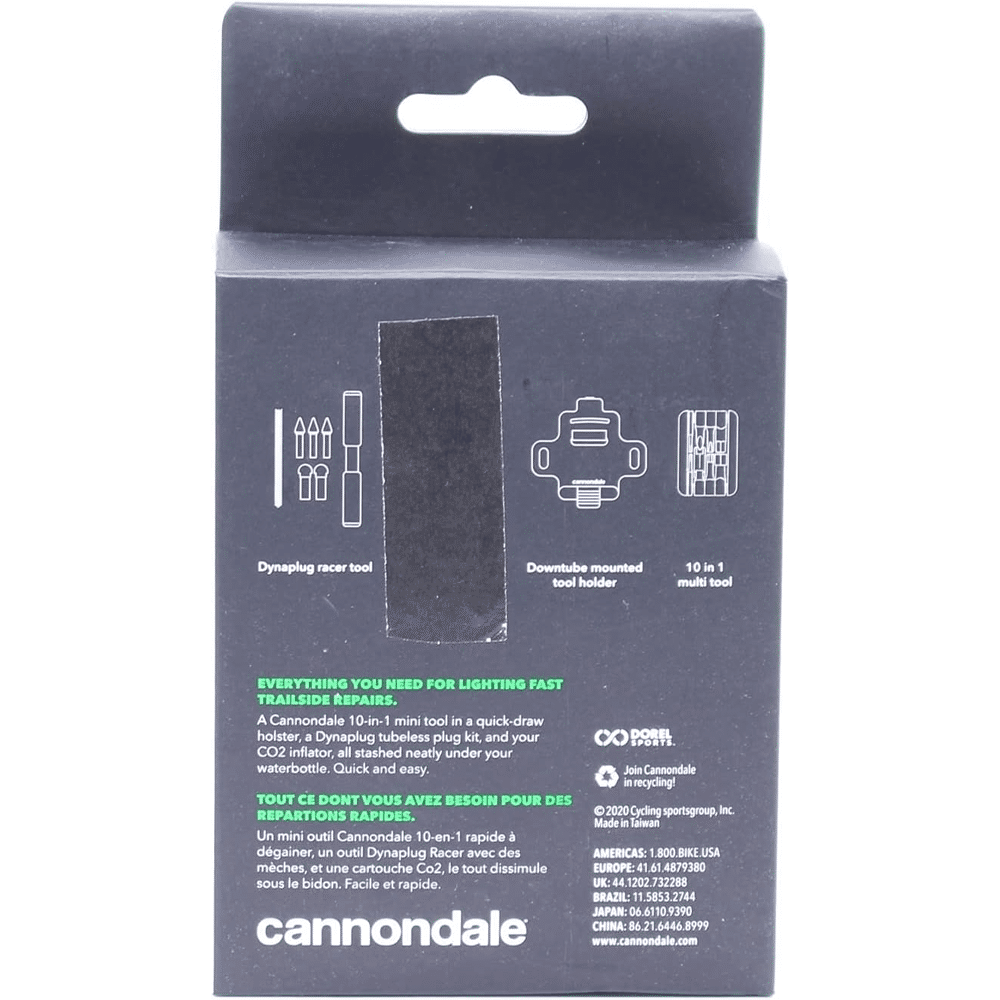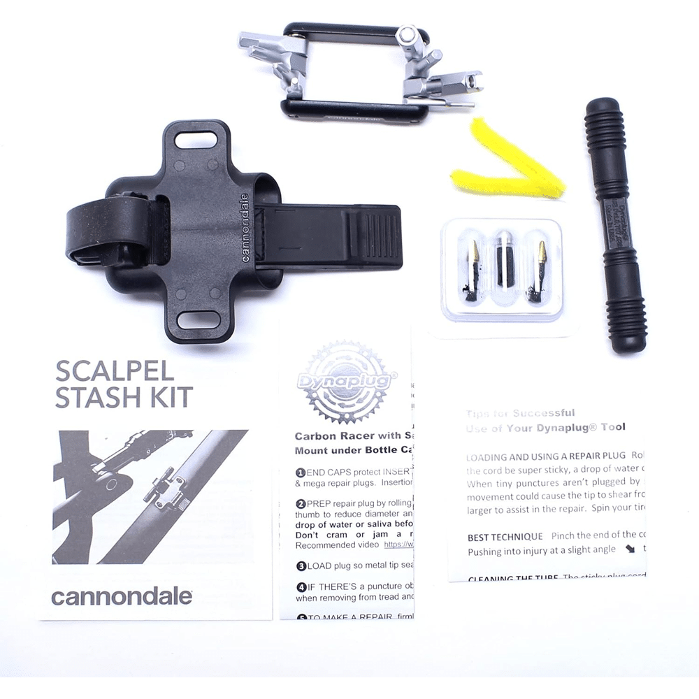 De Cannondale Scalpel Mini-fietsgereedschap maakt gebruik van een speciale opening in de onderbuis van de Scalpel 2021+ modellen, direct onder de bidonhouder. De houder klikt stevig vast met meegeleverde montagehardware. Het multifunctionele gereedschap bevat alle sleutelmaten die je nodig hebt voor aanpassingen onderweg. De Dynaplug Racer-versie past perfect in de geïntegreerde houder en wordt extra geborgd met een rubberband die ook je CO2-patroon op zijn plaats houdt. Trek simpelweg het gereedschap uit de houder wanneer je het nodig hebt, voer je reparatie of aanpassing uit, en klik alles weer terug op zijn plaats.