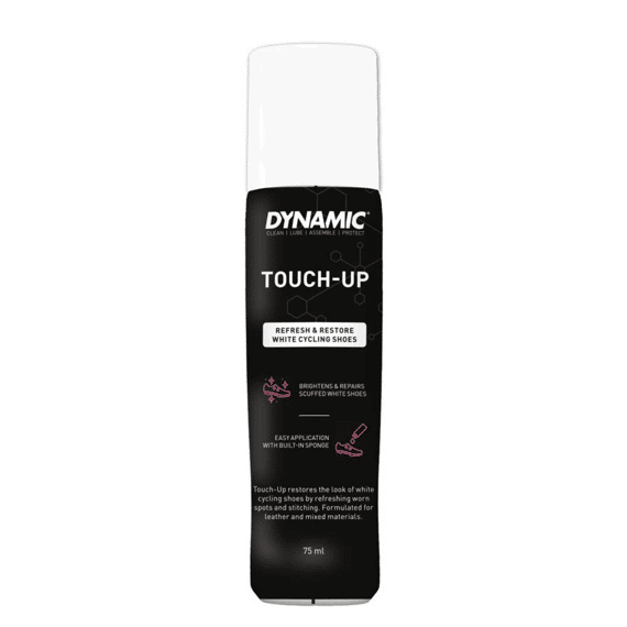 De Dynamic Touch Up reiniger is speciaal ontworpen voor witte fietsschoenen. Voor optimale resultaten raden we aan het product alleen op witte of lichtgekleurde schoenen te gebruiken. Test het product altijd eerst op een onopvallende plek.