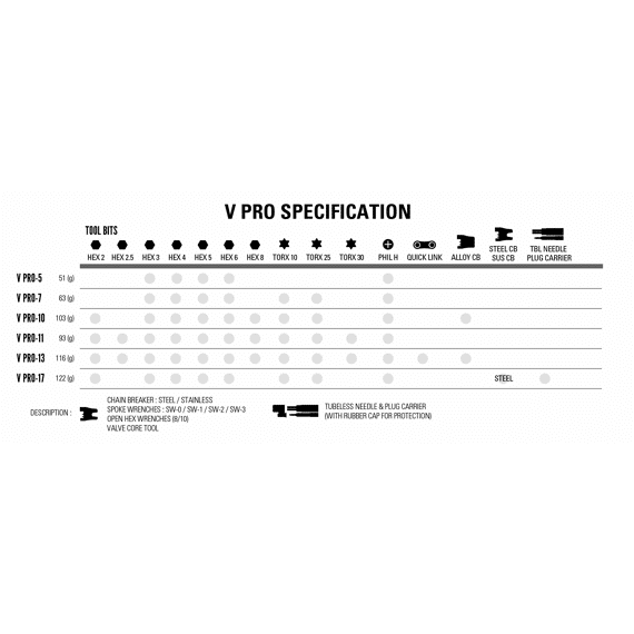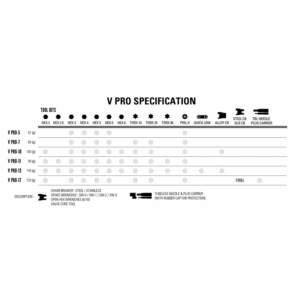 De Lezyne V Pro multitool combineert premium kwaliteit met praktische functionaliteit voor elke fietser. Met geavanceerde Black Anti-Corrosion technologie en CNC-gefreesd aluminium biedt deze compacte tool alles wat je nodig hebt voor onderweg reparaties. Perfect voor zowel recreatieve fietsers als professionele monteurs die vertrouwen op betrouwbare gereedschappen.