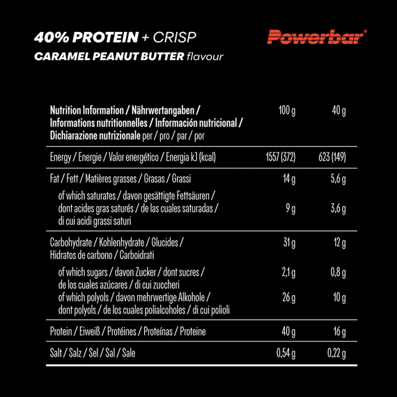 - Product: PowerBar 40% Protein+ Crisps - Caramel Peanut Butter