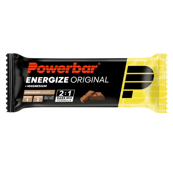 Powerbar Energize Original energiereep geeft je snel beschikbare energie dankzij de optimale 2:1 koolhydraatverhouding van glucose en fructose, aangevuld met natrium en magnesium voor een efficiënte elektrolyten- en energiebalans. Licht verteerbaar, makkelijk te kauwen en ideaal om je tempo vast te houden tijdens lange of intensieve inspanningen.
