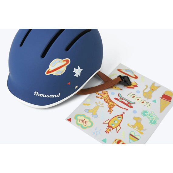 De reflecterende stickers die bij elke Thousand helm worden geleverd zijn ontworpen om eenvoudig verwijderd en opnieuw geplaatst te kunnen worden. Zo kan je kind regelmatig de look van zijn helm veranderen en blijft het leuk en persoonlijk.