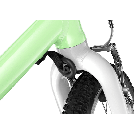 De twee onafhankelijke mini V-brakes met ergonomische remhendels zijn perfect voor kleine handen. De achterrem heeft groene remhendel en remblokken voor gemakkelijke herkenning. Alle componenten zijn kindvriendelijk ontworpen met verzegelde lagers en duurzame materialen.